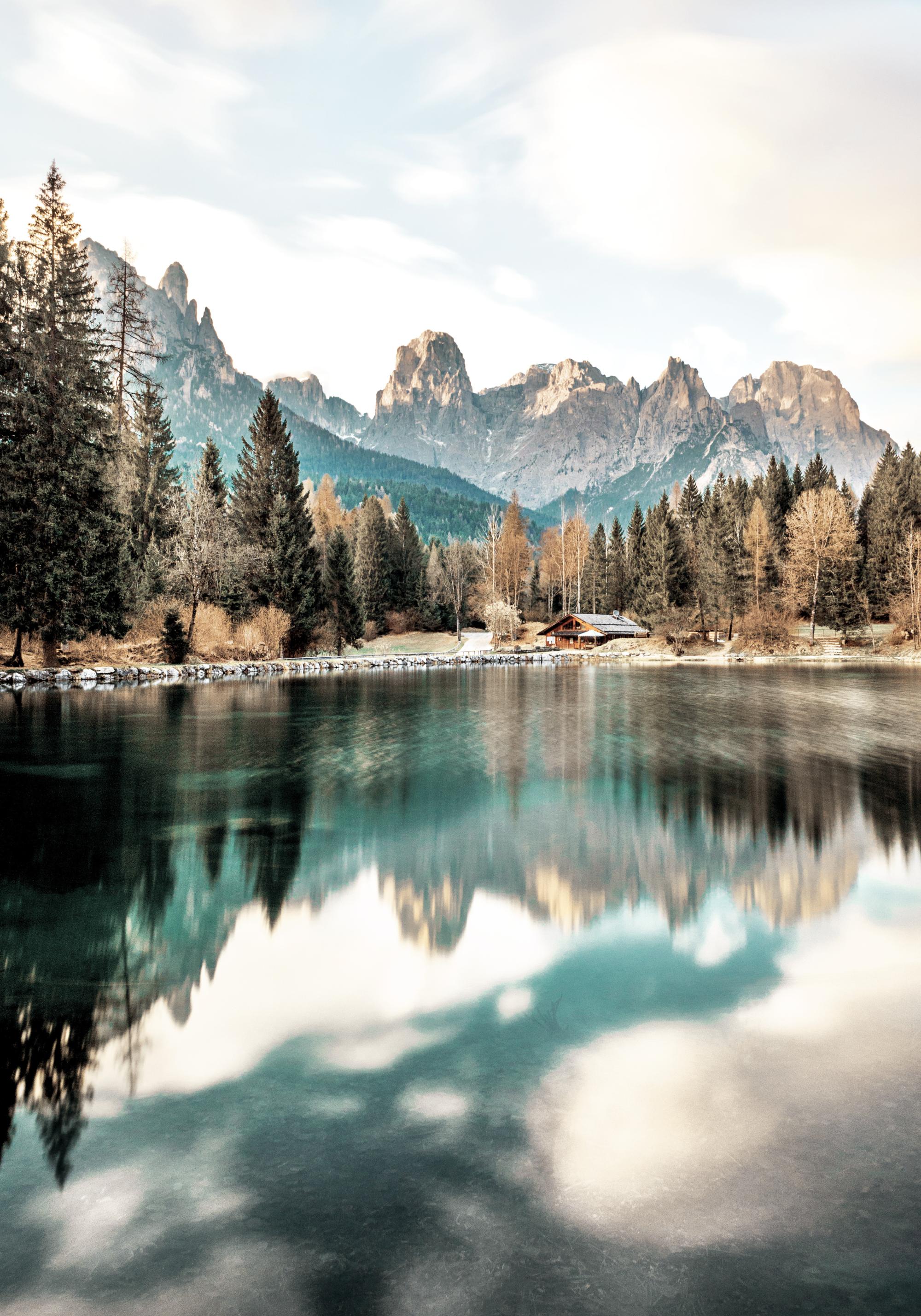 Eine schöne Bilderwand mit Landschafts- und abstrakten Kunstwerken in warmen Farben. Die Bilder zeigen verschiedene Designs in Beige- und Erdtönen.